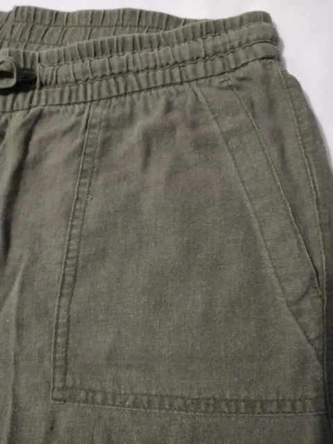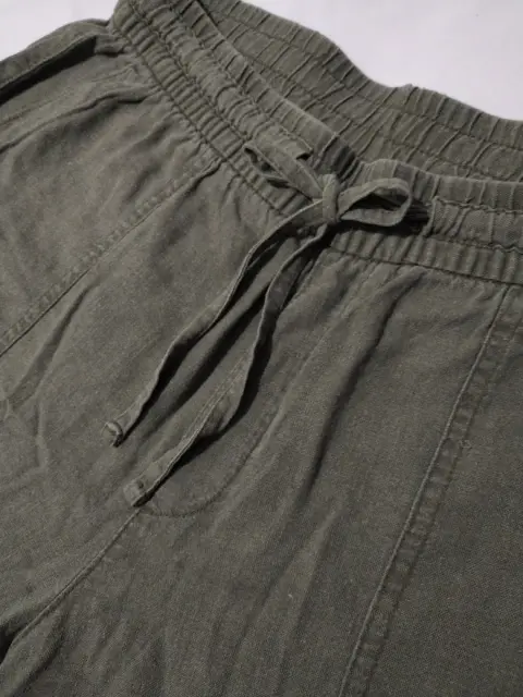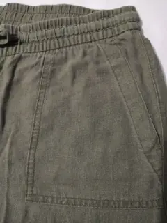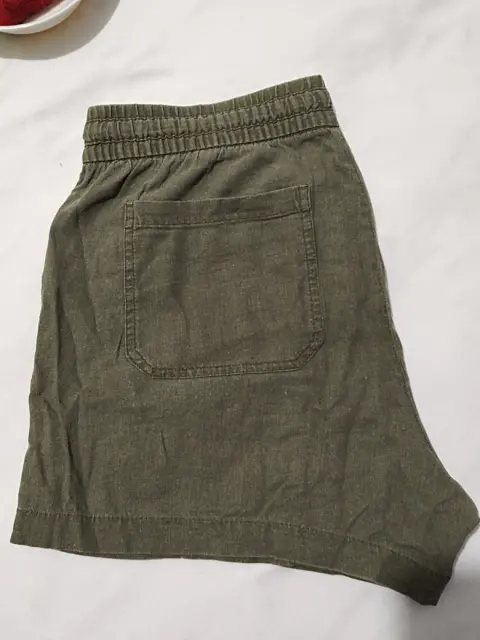 Short de Lino Old Navy. Short de Lino en tono verde olivo. El estilo es de tiro alto y la pretina elástica se ajusta a tu comodidad, el material de lino es fresco y seco en días calurosos. Perfectos para cualquier ocasión informal.Talla M. Sin detalle.