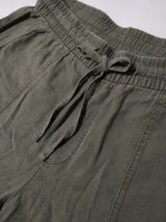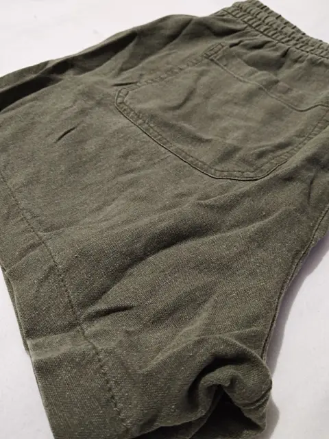 Short de Lino en tono verde olivo. El estilo es de tiro alto y la pretina elástica se ajusta a tu comodidad, el material de lino es fresco y seco en días calurosos. Perfectos para cualquier ocasión informal.Talla M. Sin detalle.