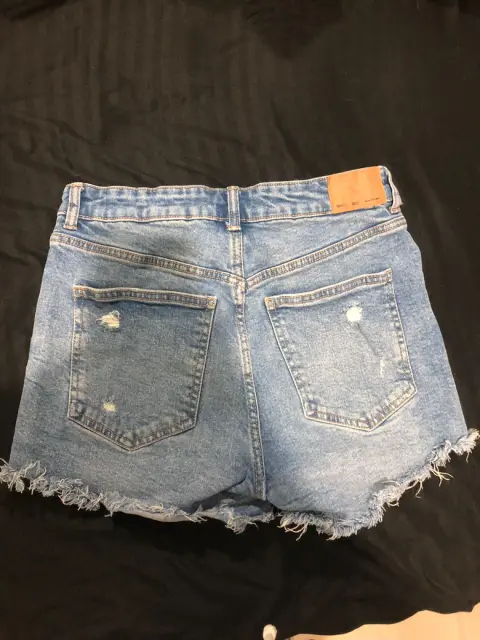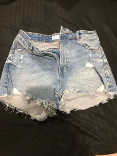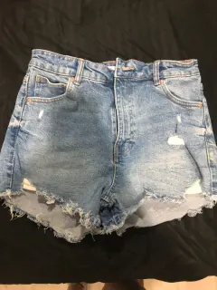 Short de mezclilla. Short corto de mezclilla. Rasgado con acabado rasgados en la pierna, azul claro.