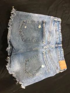 Short corto de mezclilla. Rasgado con acabado rasgados en la pierna, azul claro.