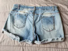 Short de mezclilla. Short corto de mezclilla estilo desgastado, talla 2 (30 Mexicano), color azul claro deslavado, de algodón para esta primavera.