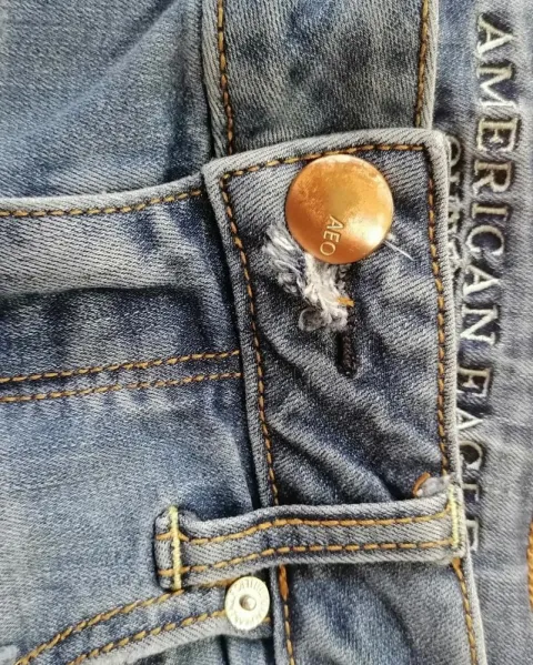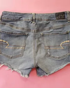Short de mezclilla American Eagle. Short de mezclilla con pequeño detalle en el botón, por lo demás se encuentra en buen estado.Es talla 7 - 9, en etiqueta dice 12.