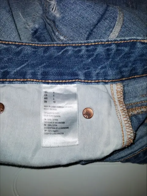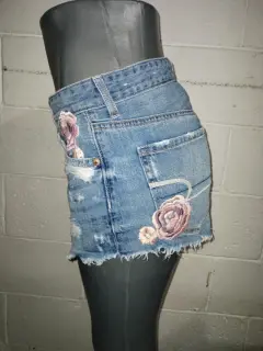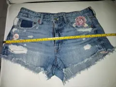 Short de mezclilla con bordados American Eaglee. Short de mezclilla American Eagle con flores bordadas tiro corto con bolsas delanteras y traseras talla s