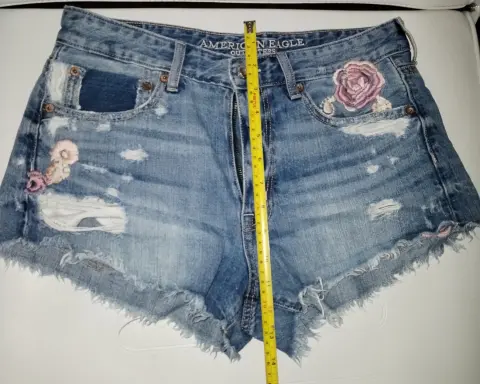 Short de mezclilla American Eagle con flores bordadas tiro corto con bolsas delanteras y traseras talla s