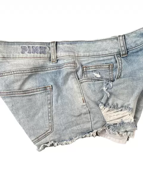 Short de mezclilla PINK. Short de mezclilla azul claro PINK talla 10 con medidas 42 cm de cintura 25 cm de largo 30cm en el tiro