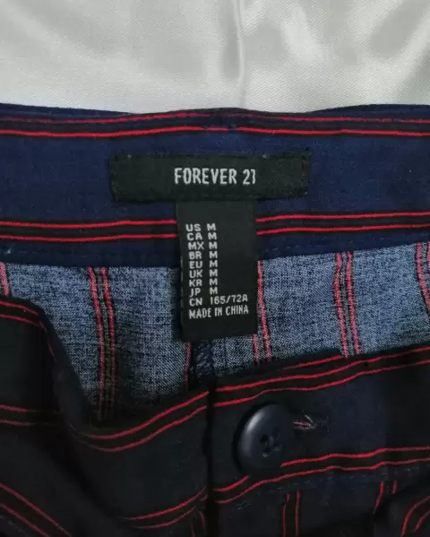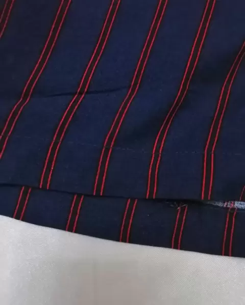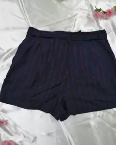 Short de tela azul. Los colores reales se aprecian en la segunda foto.Es azul marino con rojoEstá muy bonito, tiene cierre, botón y cinta en la cintura.▪️Cintura: 38cm.No estira