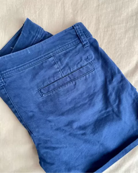 Short de tela azul marino. Short azul en perfectas condiciones. No estira, el corte es a la cadera y la talla es 6.