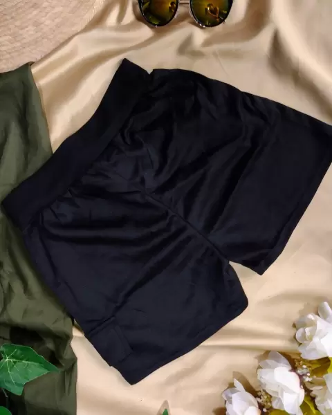 Short de tela color negro. ❤Precio a tratar si es compra inmediata o si te interesan otras prendas de mi clóset :3✨Se envía en un mismo paquete para ahorrarnos los envios 🤗✨Es nuevo👌El resorte estira bastante y tiene su cordon para ajustar👉Talla L pero queda mas a M🤗De igual manera les dejo las MEDIDAS para que se puedan basar en eso🪡Cintura 36 cm🪡Largo 40 cm
