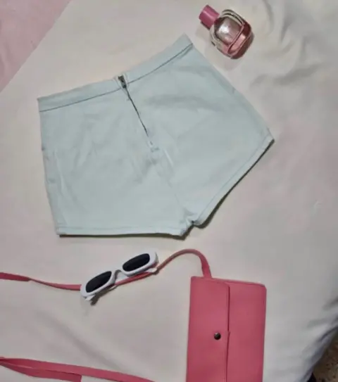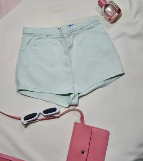Short alto verde menta marca that's it talla S, queda bien para una persona petite porque va a la cintura y queda cortito, se ve hermoso puesto!! puede ser casual o formal.Largo: 33 cmCintura: 66 - 70 cm