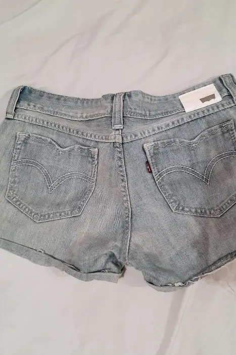 Short Levis. Medidas:cintura 42cmlargo 25cm ancho de cada pierna 27cdmSIN DETALLES.
