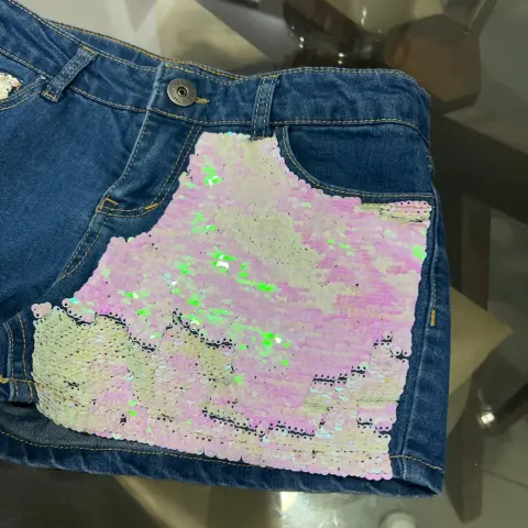 Short mezclilla con lentejuela. Hermoso short para niña con lentejuela le da un toque increíble al short