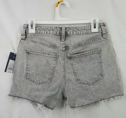 SHORT DE MEZCLILLA,MARCA UNIVERSAL THREAD,TALLA 2/26 R,VINTAGE MIDI,STRETCH, 99% ALGODON,1% SPANDEX, MIDE CINTURA 74 CM, CADERA 84 CM, TIRO 27 CM,PIERNA 26 CM,COLOR GRIS