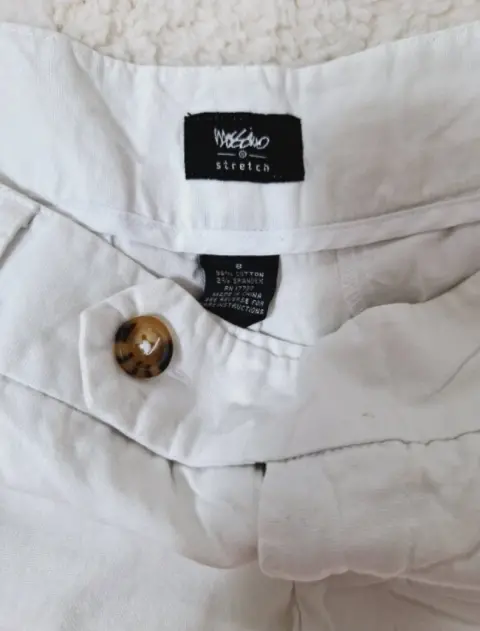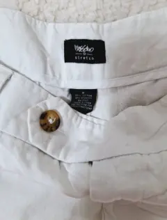 SHORT MOSSIMO STRETCH M, blanco, bolsas laterales y traseras, tela gabardina ligera.Medidas:Cintura 43cmLargo 32cm