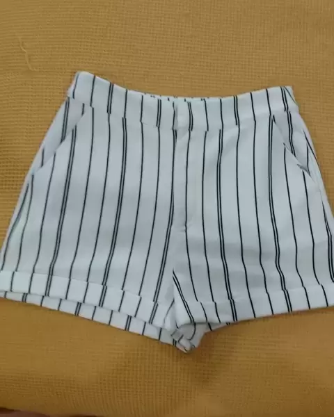 Short muy elegante blanco con rayas negras. Short muy elegante, blanco con rayas negras, con bolsillos al frenteIdeal para playa, ciudad de clima cálido Muy bonito, elegante y cómodo