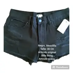 Short nuevo, mezclilla, sin detalles.Marca: Billabong. Talla-30Cintura: 90cmCadera: 112 cm.Color: negroCon bolsas