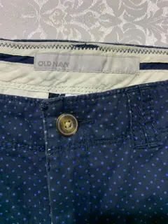 Short Old Navy. Short con estampado de puntos blancos, con 4 bolsillos. Tela con poco strech.Medidas/ cintura: 35 cm, cadera: 44 cm, tiro: 22 cm, largo: 27 cm.