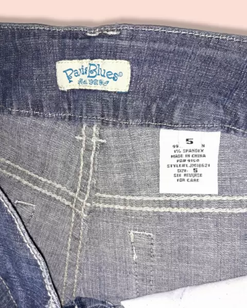 Mezclilla stretch, marca Paris Blues, talla 5, color azul mezclila medio, sin detalles, en perfecto estado.