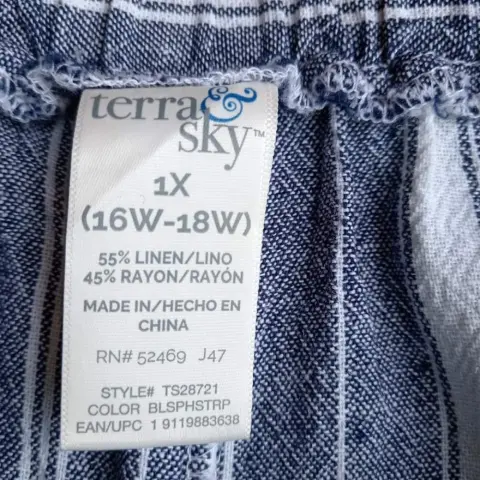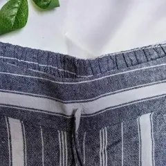 Short veraniego, rayado gris con rayas blancas, tiene resorte en la cintura en la parte trasera, 55% Lino, 45% rayon