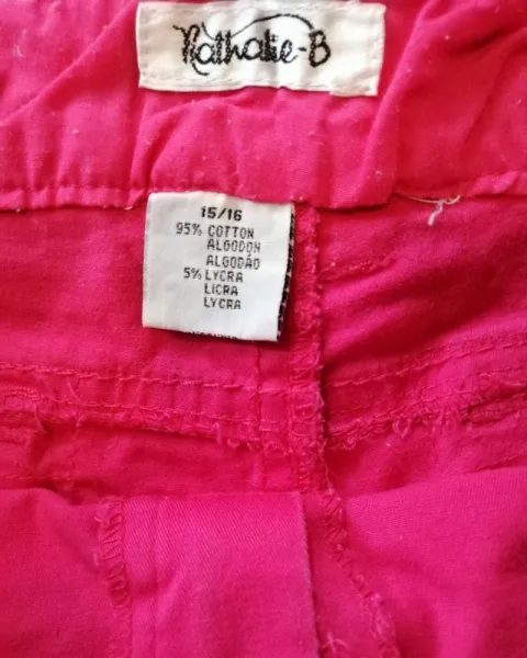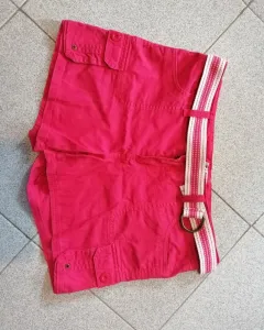 Short rosa con cinturón. Short color rosa mexicano con cinturón blanco con rosa. Talla medina. Tiene 2 bolsas a los lados y dos al costado con botón.MedidasCintura 45 cmLargo total 37 cmLargo del tiro 24 cmCadera 49 cm