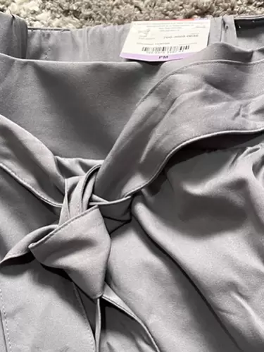 Short/falda gris. Hermosa Faldita con short (skort) de tela. El color es entre gris y azul. Súper bonito, delgadito y fresco. Tiene resorte en cintura y bolsitas a los costados. Medidas cintura 41 cm, largo 40 cm.