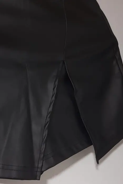Short/Falda tipo piel negro. Short/Falda tipo piel negrotalla Scon cierre al costadomedidas aproxCintura 34 cmCadera 41 cmlargo 34 cm