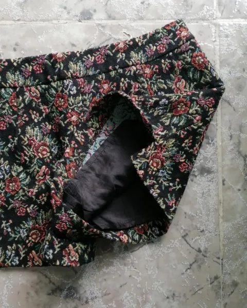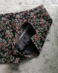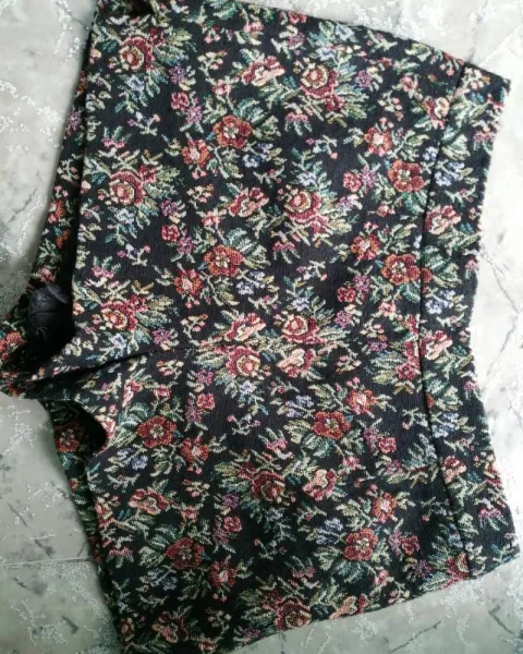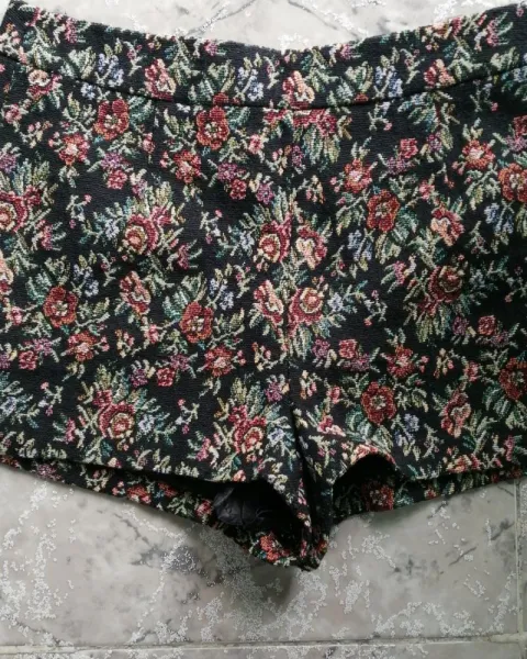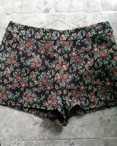 Shorts. Shorts color negro con detalles de flores con colores verde, azul, naranja, advertirá a los lados y cierre discreto.