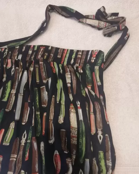 Esta en muy buen estado no se uso tiene resorte y tiene una citas para hacer un lindo moño tiene bolsillos y es muy fresco lo puedes convinar con tenis casuales o zapatillas.