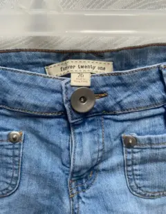 Shorts Denim claro Úselo de 2 maneras; corto o muy corto. Bolsillos delanteros y traseros tipo cartera, pantalones cortos de tiro bajo. Argollas laterales para subir el pantalón. Talla: S (26-28) Marca: FOREVER 21.