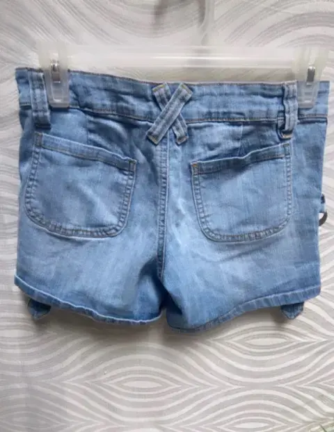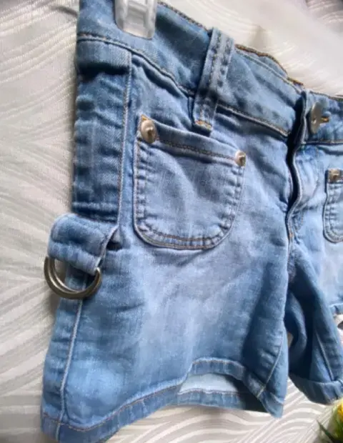 Shorts Denim claro Úselo de 2 maneras. Shorts Denim claro Úselo de 2 maneras; corto o muy corto. Bolsillos delanteros y traseros tipo cartera, pantalones cortos de tiro bajo. Argollas laterales para subir el pantalón. Talla: S (26-28) Marca: FOREVER 21.