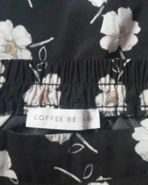 Short ,solo se utilizo una vez,es color negro con vivos florales en color blanco y amarillo, talla Mediana, elastico en la parte trasera, pequeño olan en la parate baja de costado en las piernas, ligero y muy comodo