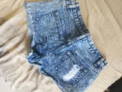 Shorts mezclilla. Mini shorts de mezclilla, de dama, color mezclilla jaspeado, talla XS, marca Forever 21, en buenas condiciones.
