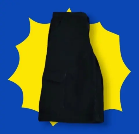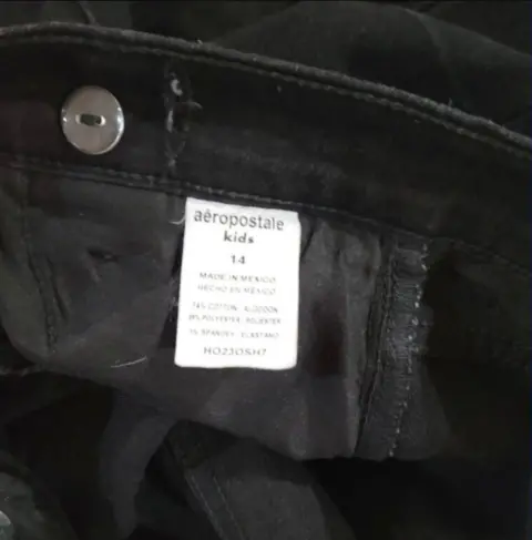 Short de Mesclilla Tipo Cargo de Aeropostale, talla 14 slim, color negro, multiples bolsas, cierre de cremallera y boton de cierre, pretillas para cinturon, hecho de poliéster y algodón, previamente usado en buen estado cosmetico