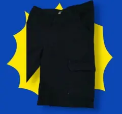 Shorts Tipo Cargo Aeropostale. Short de Mesclilla Tipo Cargo de Aeropostale, talla 14 slim, color negro, multiples bolsas, cierre de cremallera y boton de cierre, pretillas para cinturon, hecho de poliéster y algodón, previamente usado en buen estado cosmetico