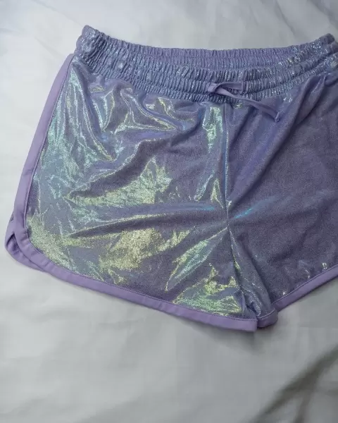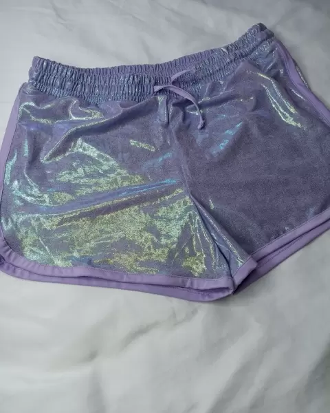 Shorts tono lila. Short More Than Magic Girls Shine en color Púrpura iridiscente.Talla 14/16 de adolescente, queda bien a XS