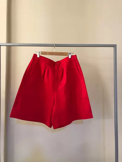 Short tiro alto, acentúa mucho la cintura. Es hermoso, el rojo es súper vivo y de tela muy cómoda (no estira) Medidas:Cintura 84 cm, cadera 112 cm.