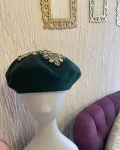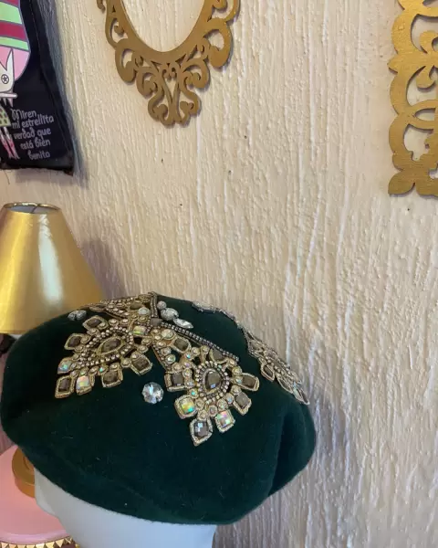 Boina en tela de lana, con aplicaciones en cristal. Unitalla! 💜
