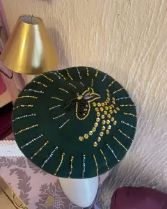 Boina. Boina en tela de lana aplicación abejorro 🐝 con cristales, lentejuelas y chaquiron. Unitalla 💜