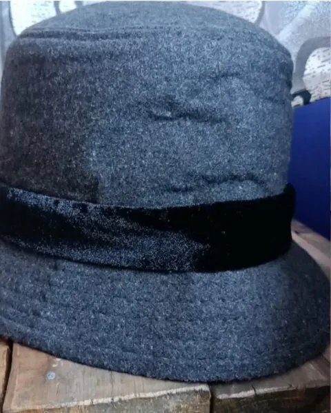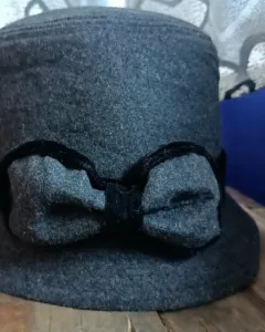 Bonito sombrero gris con cinta y moño negro ideal para la temporada de frío o lucir en la noche