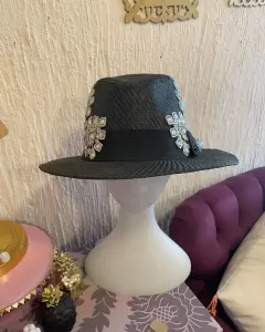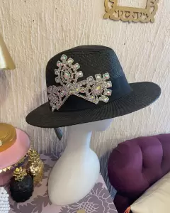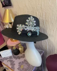 Sombrero con aplicación tipo Hindu con cristales. Da de S a M 💜