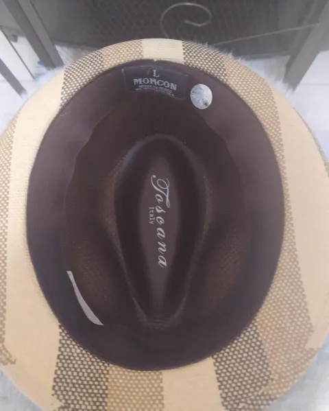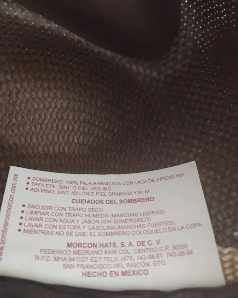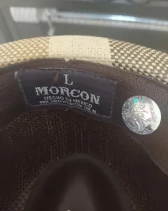 Sombrero café talla L. Sombrero nuevo con etiqueta de la marca mexicana Sombreros Morcon, 100% de paja barnizada con laca de piroxilina. Color cafe y franjas café claro y beige, cuenta con adorno cintilla de nylon. Puede quedar con un estilo vaquero o casual. Talla G/L