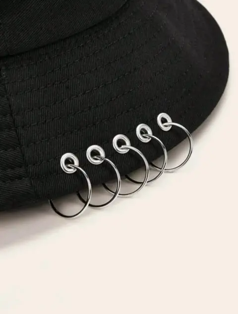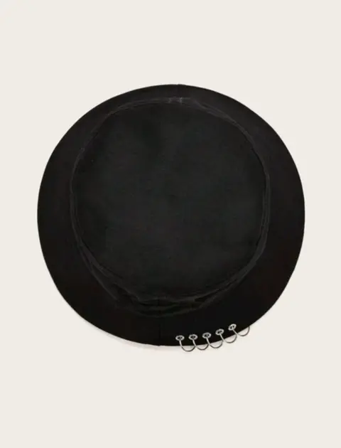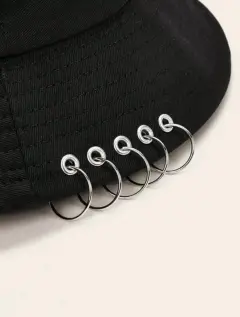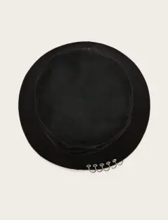 Sombrero de cubo color negro, con aros al costado, circunferencia de la cabeza 58 cm. Es unitalla.