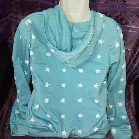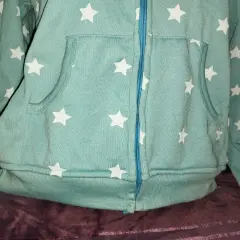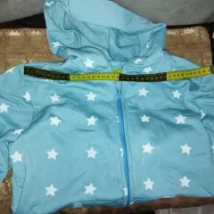 Chamarra azul de estrellas. Hermosa chamarra color azul cielo (seguimos con las estrellas 🌟🌟🌟)Tela súper calientita, cuenta con bolsas laterales y gorro.Marcada como unitalla, quedaría desde talla XS -M.Medidas en la última fotoUn básico en tu closet ♥️♥️♥️🥰🥰