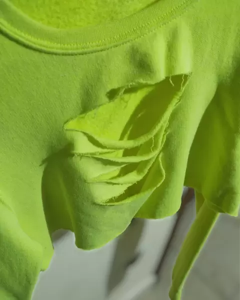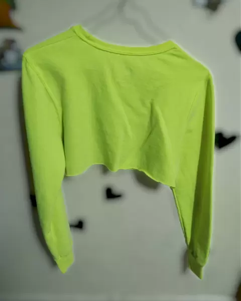 Crop sudadera amarillo florecente. Calientito por dentro y detalle de abertura en los pechos.