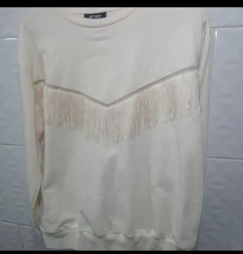 Calientita sudadera color beige talla M con barbitas enfrente del pecho💅💅☺️☺️de cuidado con el perro