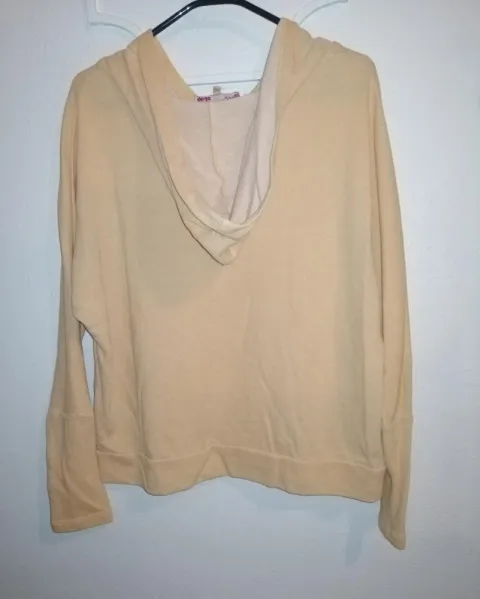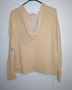 Sudadera color amarillo, es talla EG pero considero que es para una talla G. Tiene gorra y bolsa en frente. Es ligera y muy cómoda.