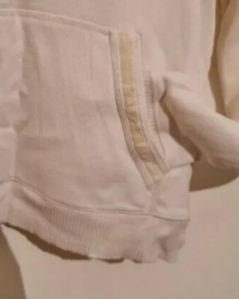 PADRISIMA SUDADERA ALGODON Un poco mas grueso ,afelpado!! gorro afelpado con peluche !! Letras bordadas,prenda Original.De medio uso en excelente estado!!!BEIGE HERMOSO.MUY BUENA CALIDAD!! talla : S/M