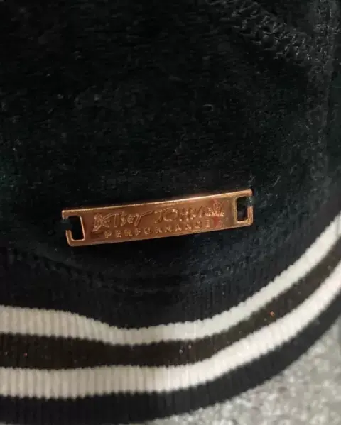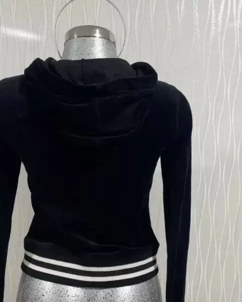 Sudadera BETSY JOHNSON. Tela tipo terciopelo, con capucha, cierre dorado, bolsillos frontales