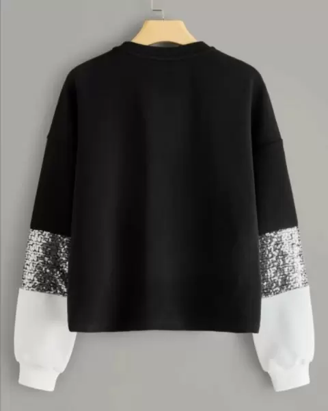 Sudadera bicolor blanco y negro con lentejuelas