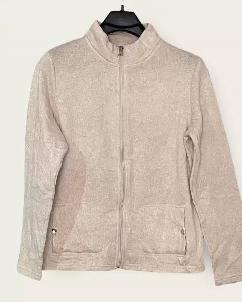 Hermosa chamarra tipo sudadera con botones en las bolsas laterales, calientita y casual