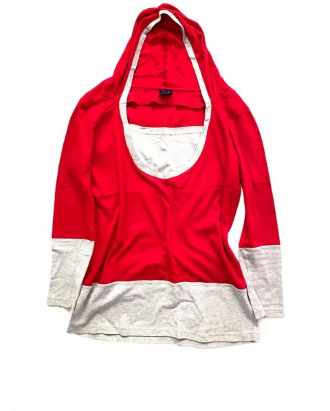 Sudadera delgada con capucha rojo con gris solo se uso una vez